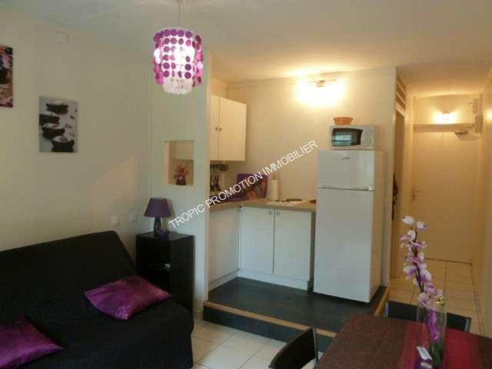 Trois-Îlets (97229)Appartement meublé comprenant une pièce principale climatisée avec espace cuisine aménagée et une salle d'eau avec toilette. Situation exceptionnelle à 50m de la plage et des navettes, conviendrait pour rapport locatif et pied à terre.