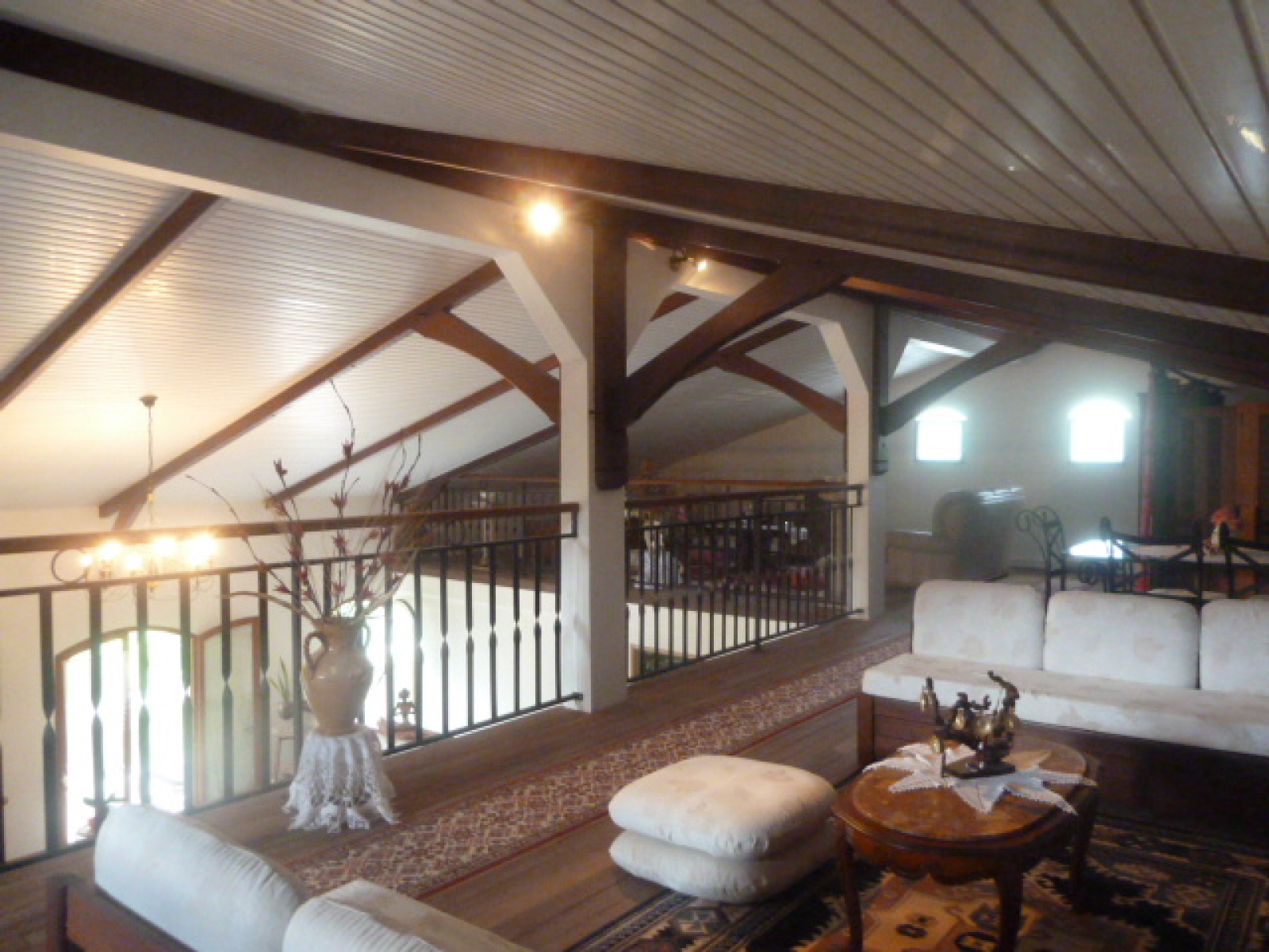 Vous pourrez apprécier la fraicheur grace une magnifique hauteur sous plafond avec une charpente bois traditionnelle, et vous reposer dans les divers salons de la mezzanine de 50m².