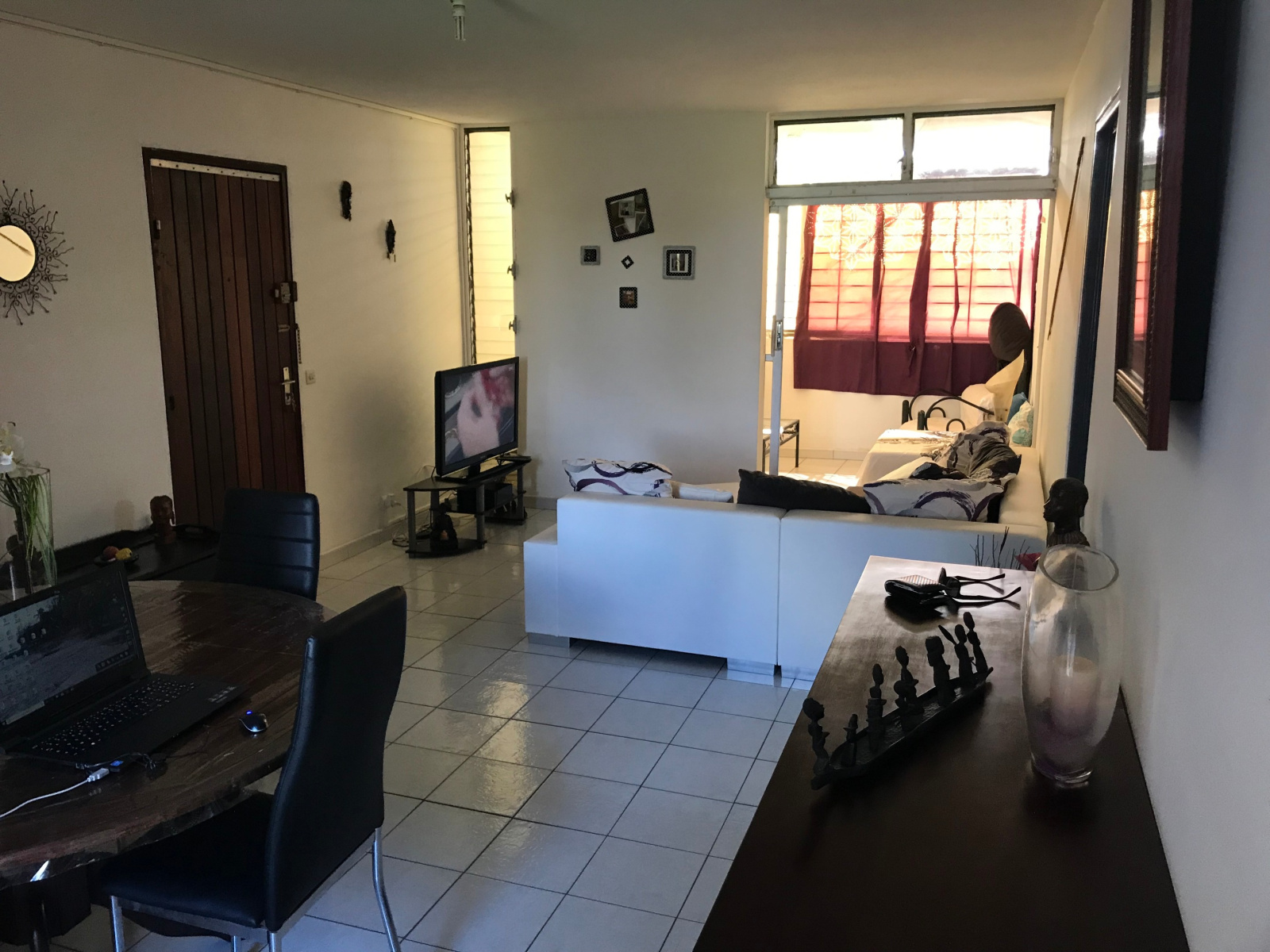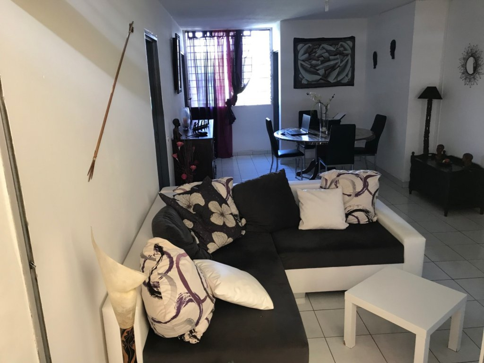 Ducos (97224)Ce joli appartement d'environ 80 m2 en parfait état se compose d'un séjour ouvrant sur une loggia, une belle cuisine équipée avec une buanderie, un dégagement avec placard, trois chambres climatisées dont une avec une salle de bains attenante, une salle d'eau avec douche à l'italienne, un WC et une place de parking.